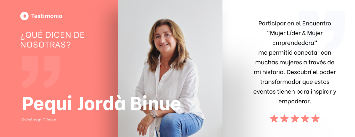 Sueña en Grande. Lidera con Pasión. Emprende con Impacto. Mujer Líder & Mujer Emprendedora es un evento internacional que tiene como objetivo empoderar, motivar y apoyar a las mujeres en su crecimiento personal y profesional vinculado a la Fundació Temps i Compromis. En 2022 iniciamos la alianza ML&ME y Fundació Temps i Compromis con el objetivo de ayudar y ampliar nuestro apoyo hacia muchas más mujeres. Descubre más >>>